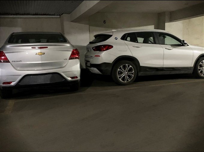 Cocina con encimera dos fuegos , campana, horno ; cubierta granito ; muebles , refrigerador ; gasto común incluye agua caliente . Estacionamiento en el menos dos ; Número 6, caben dos autos .