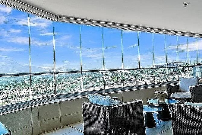Terraza cerrada con vidrios plegables