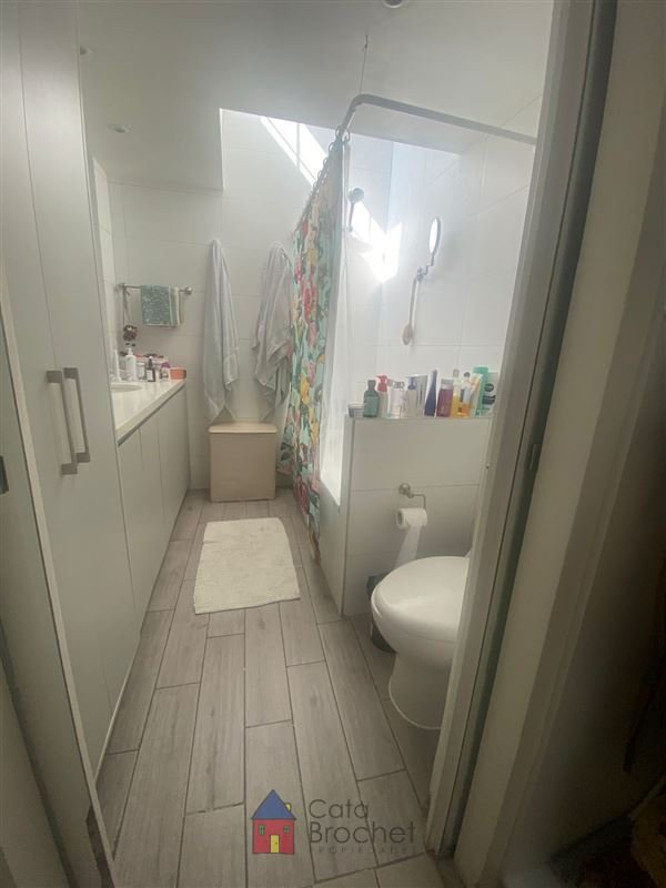 Hall de entrada, living y comedor juntos muy iluminada, con cocina integrada, mesón con cubierta de cuarzo, encimera de 6 hornillas a gas, campana y horno eléctrico. Tiene 2 dormitorios y 2 baños, principal con salida al patio trasero.