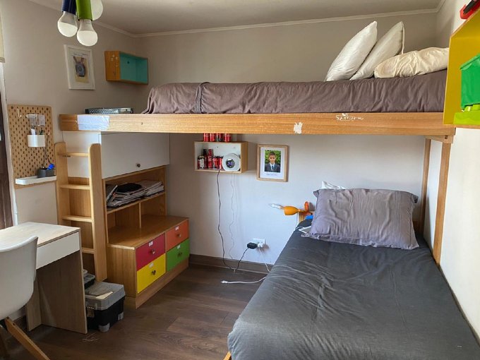 El condominio tiene áreas verdes, juegos infantiles y piscina.