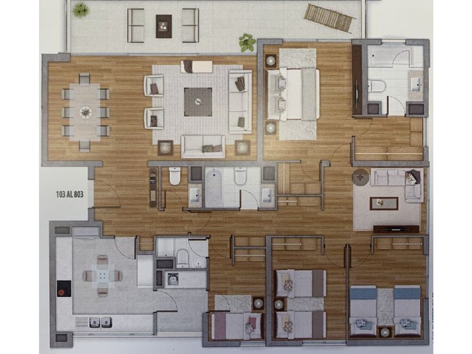 Departamento orientación Nor- Oriente, amplio y moderno departamento, con amplia pieza principal en suite (con salida a la terraza) 2 walking closet y espacio para escritorio. Tiene otras 3 piezas, 2 de ellas bien amplias que comparten un baño, sala de estar (muy buenos closets). cuarta pieza en suite puede ser utilizada como servicios. 4 baños ( 1 de ellos de visita). Posee Hall de acceso y amplio living comedor , y espectacular terraza ,la cual puede quedar en un sólo ambiente con el living. Cocina muy moderna, equipada y de gran tamaño , posee logia. Piso flotante en todo el departamento, calefacción losa radiante, todas las ventanas de termopanel y con roller de primera calidad.