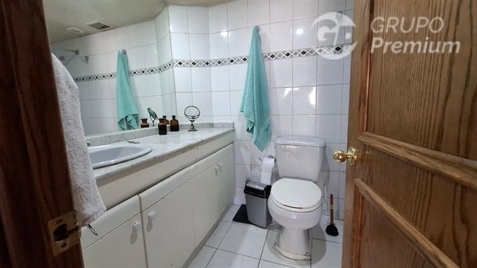 vanitorio con cubierta de marmol gris, closets de muy buen tamaño.