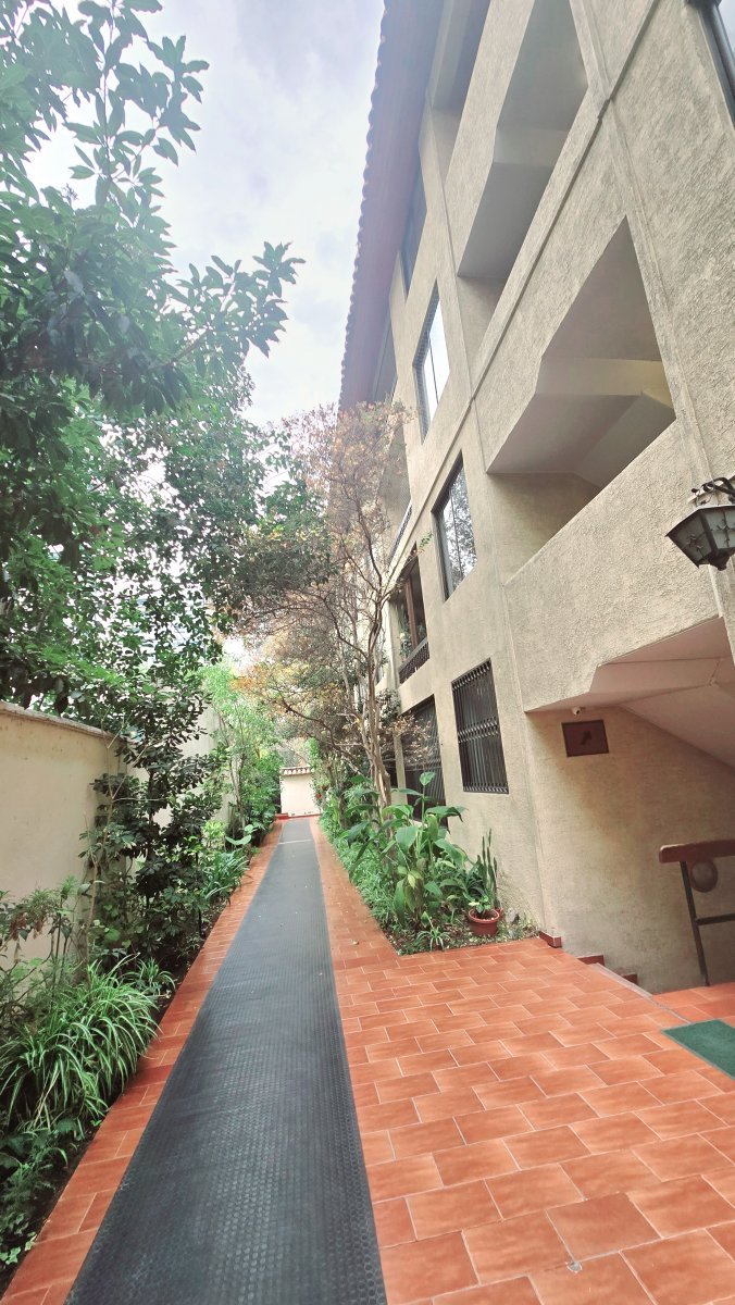Se vende departamento de 4 dormitorios ubicado en el barrio de El Golf, Las Condes. Este departamento se encuentra en el primer piso y cuenta con un patio interior techado de 17 m, accesible tanto desde uno de los dormitorios como desde la cocina.