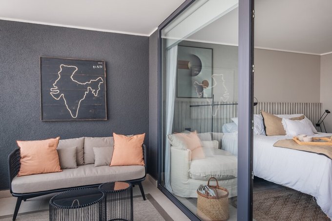 Hall de acceso, Living y comedor con salida a terraza de 13m2, cocina integrada, full equipado con encimera, horno, campana, microonda, refrigerador, lavavajilla.