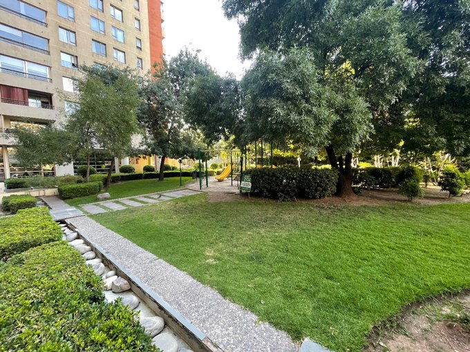 Familia con niños, ideal. Linda vista al Manquehue / Condominio con amplias áreas verdes, juegos, piscina, sala de eventos, gimnasio y sauna.