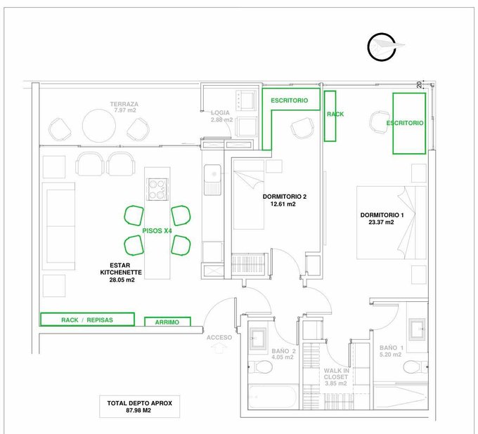 Descubre el refugio ideal que siempre has soñado en el corazón de Las Condes, Región Metropolitana. Este exclusivo y moderno departamento redefine el concepto de hogar con sus 88 m de diseño impecable, distribuidos para maximizar cada espacio y ofrecerte una vida de pura comodidad. Imagina despertar cada mañana en uno de los dos acogedores dormitorios, y comenzar tu día disfrutando de un café en la encantadora terraza de 7.79 m con vistas inspiradoras.
