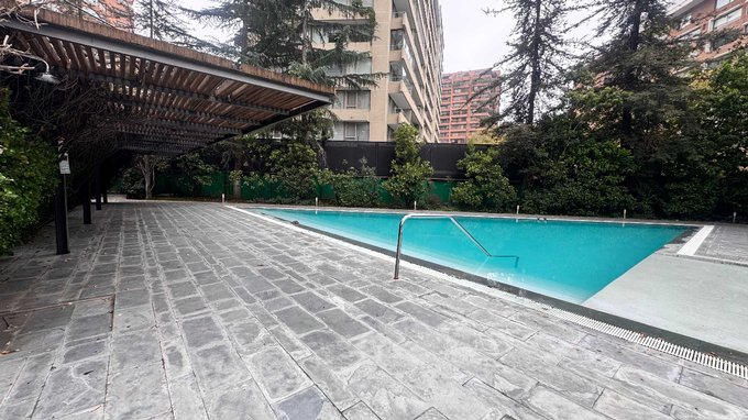Piscina, gimnasio y amplios jardines son un plus en este sector de Las Condes.