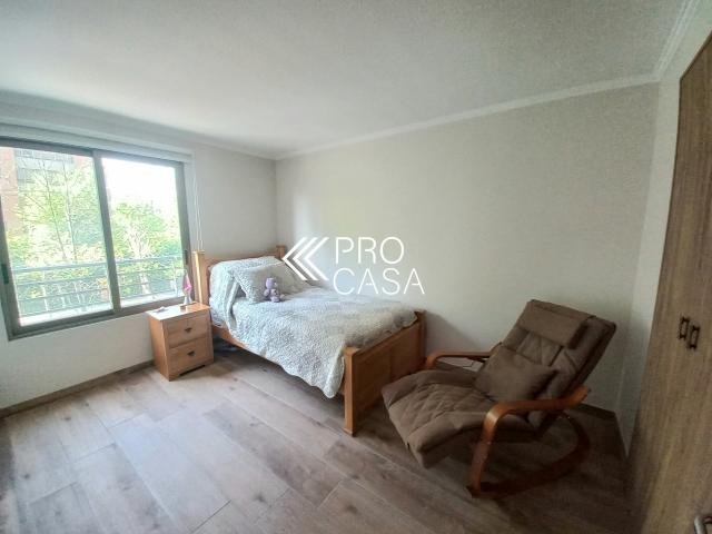 Código interno Procasa: 68242 REMODELADO / AMOBLADO Vista totalmente despejada al norte. Cerca de mall Alto Las Condes y Parque Arauco. Excelente conectividad. A pasos de la próxima estación de metro Gerónimo de Alderete. Su entorno residencial brinda una gran tranquilidad y seguridad a sus propietarios. Muy luminoso. DISTRIBUCIÓN Hall de entrada Living / Comedor con salida a terraza, cocina y loggia. Baño de visitas. Sala de estar. 3 Dormitorios, principal en suite más un baño completo. 2 Estacionamientos, 1 Bodega. 120 m2 útiles con 10 m2 terraza en un total de 130 m2 (Metraje entregado por propietario, sujeto a verificación). Gastos Comunes: $300.000 aprox. (incluye agua caliente). Contribuciones:$ 310.621 aprox.