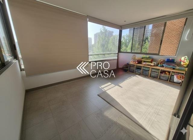 Código interno Procasa: 68888 Elegante y luminoso departamento con excelente distribución. Amplio hall de entrada. Living / comedor con salida a gran terraza. Cocina con comedor de diario y logia. 3 Dormitorios, dos de ellos en suite con walk in closet más un baño completo. Cuenta con un cuarto dormitorio en suite o escritorio externo a la cocina. 160 m2 útiles con 20 m2 terraza en un total de 180 m2 totales (Metraje entregado por propietario, sujeto a verificación) Gastos Comunes $ 480.000 aprox. Contribuciones $ 550.000 aprox. 2 Estacionamientos en tandem / 1 Bodega Edificio con inmejora ubicación y excelente conectividad, cercano a la próxima estación del metro iínea 7. Destaca por su alto nivel de seguridad. incluye piscina exterior, temperada, sauna, sala de juegos infantiles , entre otros.