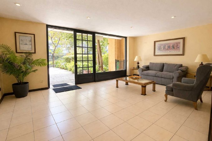 Edificio con accesos controlados 24/7, CCTV, amplias áreas verdes, piscina, sala multiuso, lavandería y estacionamientos de visitas.