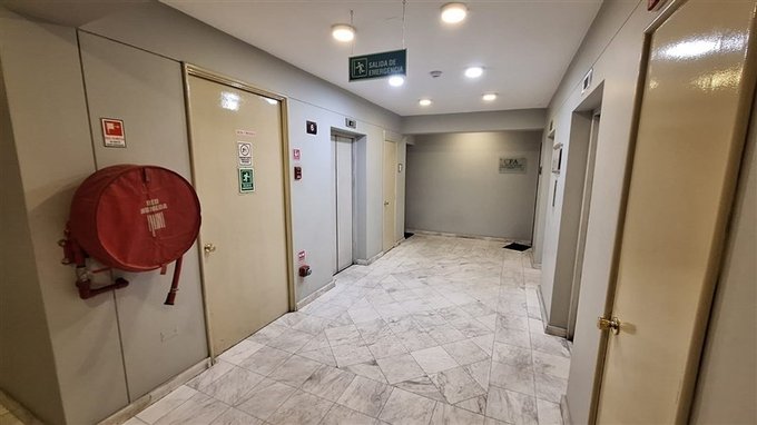 En edificio comercial, sin estacionamiento ni bodega, piso 6, gastos comunes de $200.000 incluye calefacción por losa radiante y agua.