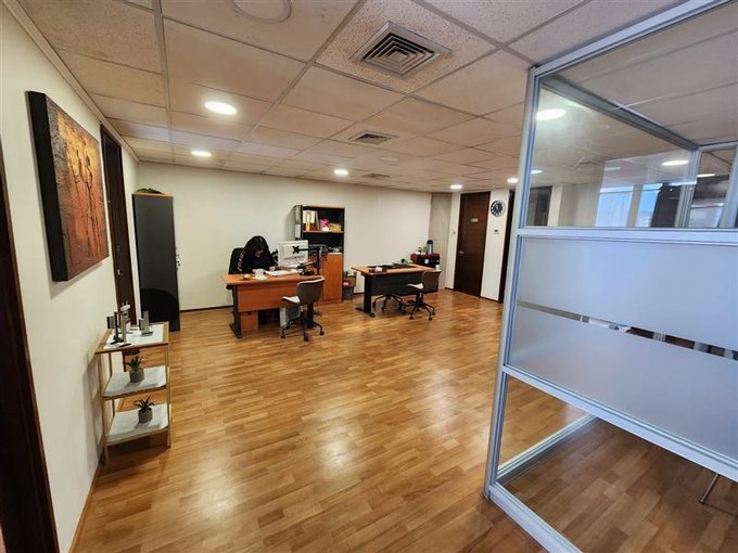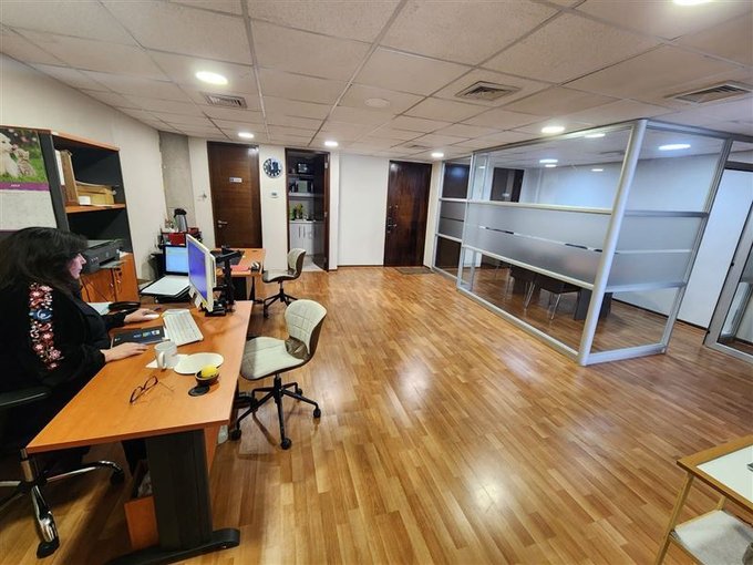 En edificio de 10 pisos se emplaza esta oficina con orientación norponiente, de 74 m2 y que cuenta con un programa de recintos compuesto por 3 privados, 2 baños, kitchenette, bodega (archivo), sala de reuniones y área de trabajo en planta libre.