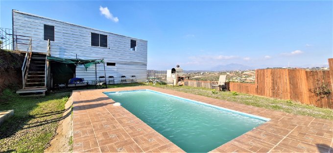 Piscina de 3 x 7 m, con zona de parrilla y una vista despejada al valle.