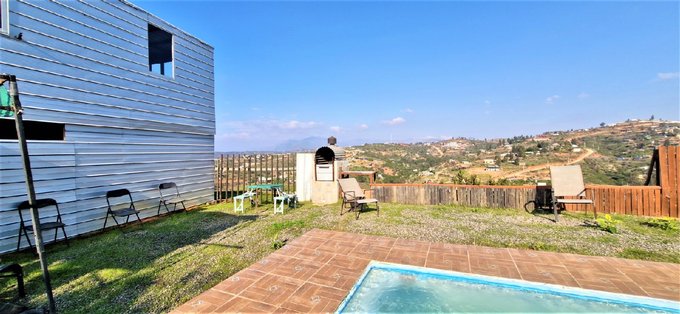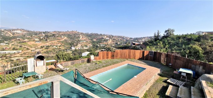 Piscina de 3 x 7 m, con zona de parrilla y una vista despejada al valle.