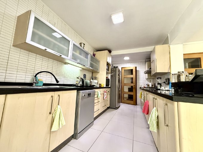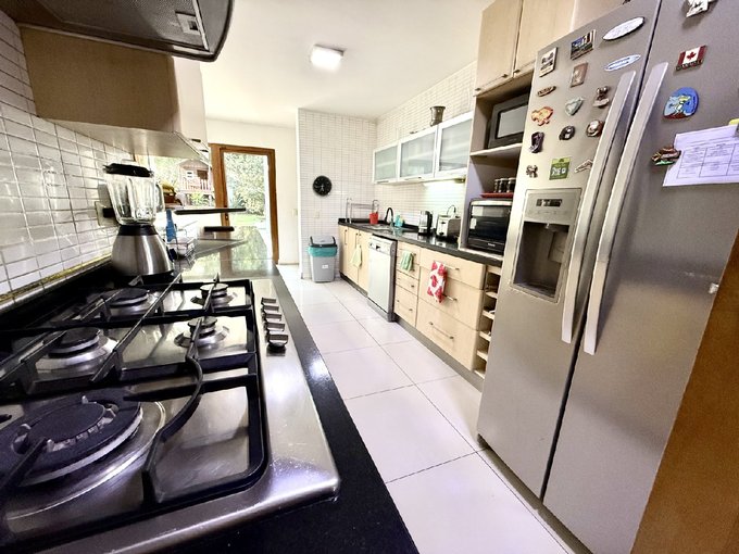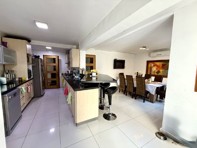 - Cocina moderna remodelada con mesón central y gran comedor de diario