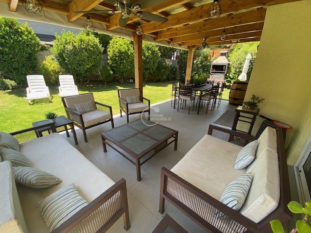 Te presentamos esta impresionante casa en venta en la exclusiva comuna de Lo Barnechea. Con una superficie total de 180 m2 y un terreno de 482 m2 con lindo jardín formado con iluminación con censores día y noche, piscina temperada con calefactor solar, terraza de 20 M2 techada con pino oregón , quincho, toldos retráctil eléctricos, riego automático, sector para juegos, ventanas con termo panel, aire acondicionado en primer y segundo piso.