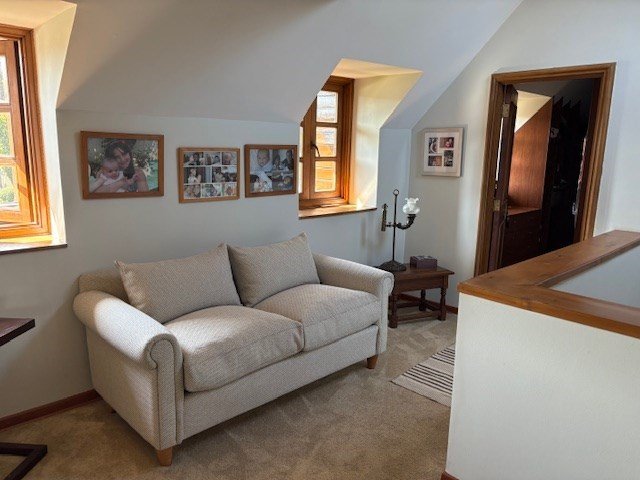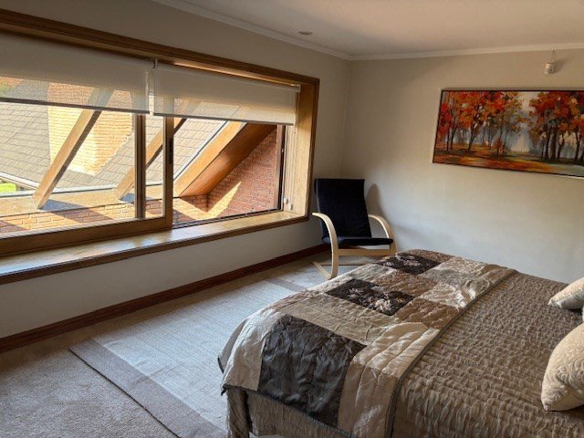 - Dormitorio principal en suite con vista al jardín. Lucarnas.
