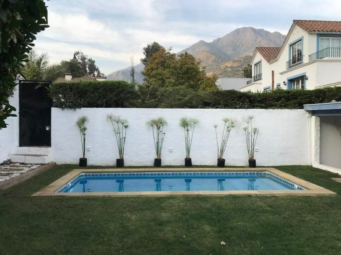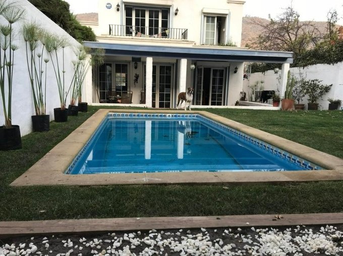 Vendo Bella y Confortable casa aislada de tres (3) pisos tipo Provenzal, en Condominio de siete (7) casas, sector El Arrayán. Comuna Lo Barnechea. Características: En una superficie construída de 183,40 m2 con orientación SO hay cinco (5) dormitorios, cuatro (4) baños, Living, Comedor, amplia cocina con comedor de diario, terrazas interiores, lavadero, despensa y servicio completo, calefacción: Piso radiante en planta baja y segundo piso, radiador con agua tercer (3) piso, Tipo de piso: En planta baja baldosín cerámico y piso flotante, en segundo (2) y tercer (3) piso, alfombra y baldosín cerámico, ventanas y puertas termopanel, persianas herméticas de aluminio en toda la propiedad, gas de cañería, citófonos. Superficie total: 402 m2, confortable terraza exterior, jardín, piscina, cámaras de seguridad en todo el condominio funcionando las 24 horas. Distribución Interna: Planta Baja: Hall de acceso, living y comedor separados, baño de visita, amplia cocina con comedor de diario, lavadero, despensa, servicio completo. Segundo Piso: Tres (3) amplios dormitorios, el principal en suite, baño, walking closet y agradable terraza, baño, gran bodega en caja escala. Tercer Piso: Dos (2) dormitorios o escritorio, uno de ellos de gran tamaño con terraza, que puede ser ocupado como sala de estar o sala de juegos, dos (2) amplios closet, baño. Propiedad en excelente estado, gastos comunes $ 100.000 mensuales. Valor Uf 5.500