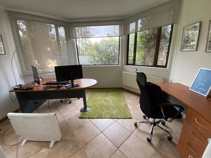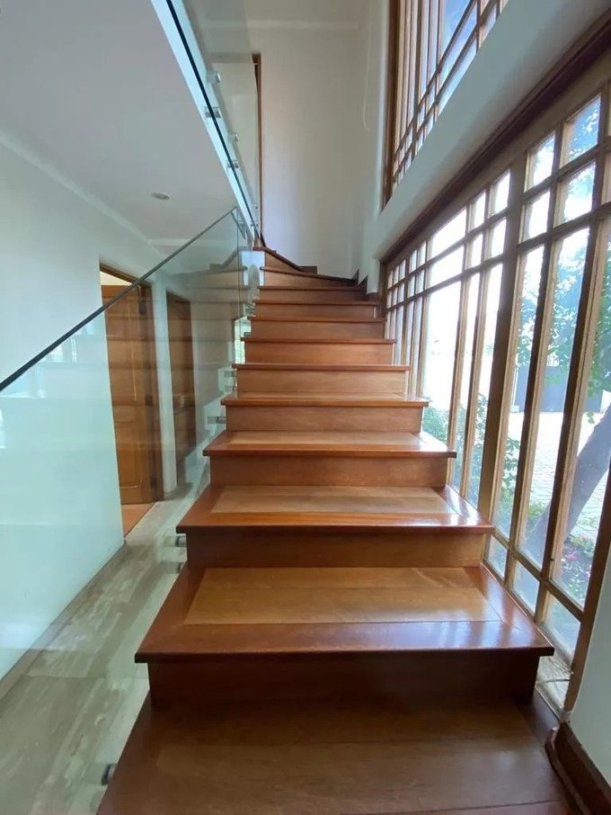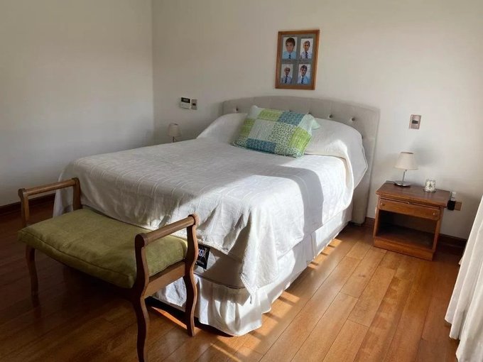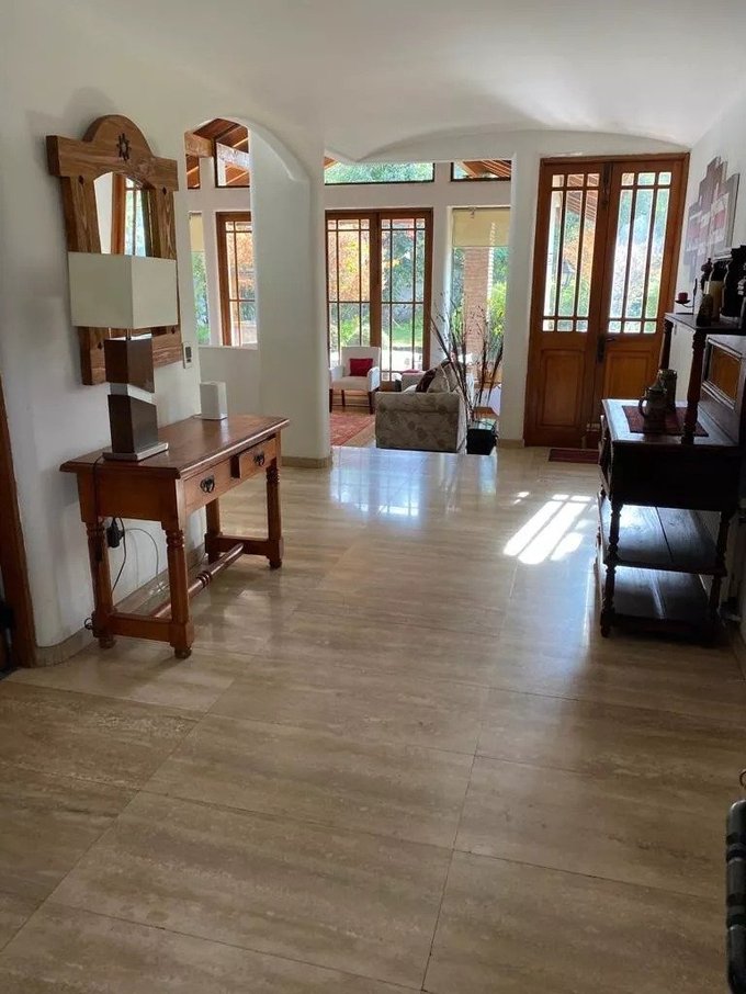 En la planta principal se recibe por un hall con piso de mármol. El comedor se encuentra separado del living, que cuenta con doble altura, piso de madera y salida directa a la terraza, la cual se conecta con un jardín formado, piscina y sector de parrilla. En este nivel también se encuentra un baño de visita, una sala de estar, cocina equipada con comedor diario, loggia, patio de servicio y una habitación adicional destinada a servicio. Además, dispone de tres dormitorios y un baño, junto con un escritorio o sala de estar adicional.