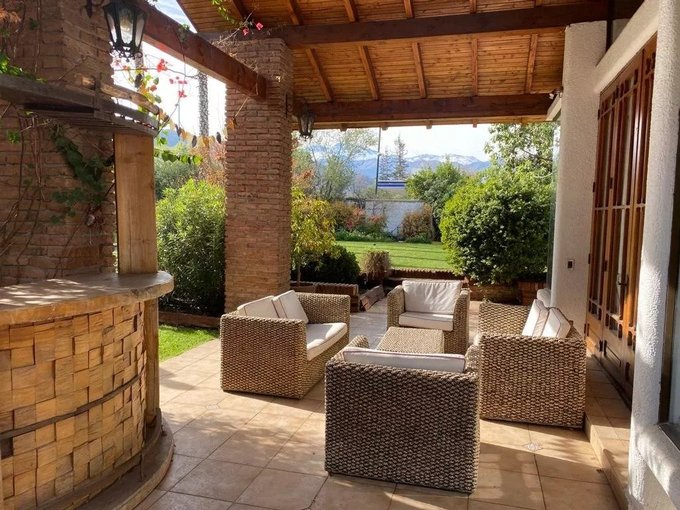 La propiedad dispone de estacionamiento con capacidad para ocho autos, cerco eléctrico y portón automático. En el exterior, el entorno ofrece áreas verdes, terraza y acceso directo a la piscina.