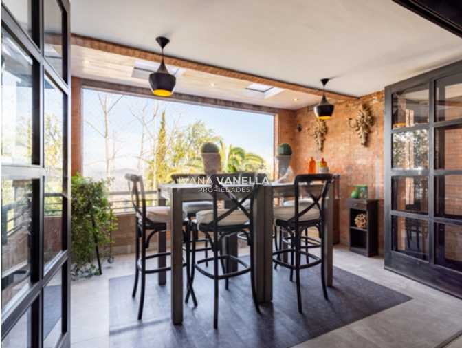 Cocina equipada con comedor de diario, logia cerrada con muebles y luz natural.