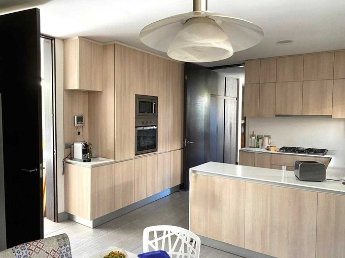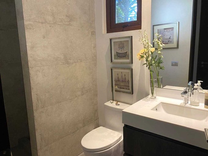 Primer nivel: Amplio hall de entrada, espacioso living y comedor separados, ambos dan a una línea de ventanales termopanel que permiten la entrada de luz natural y salida a gran terraza con parrilla empotrada, jardín y piscina, ideal para compartir en familia. A un lado, baño de visita, moderna cocina, con comedor de diario, servicios completos y gran logia cerrada. Al otro lado, gran sala de estar o dormitorio con segundo baño completo en frente. Calefacción central por radiadores.