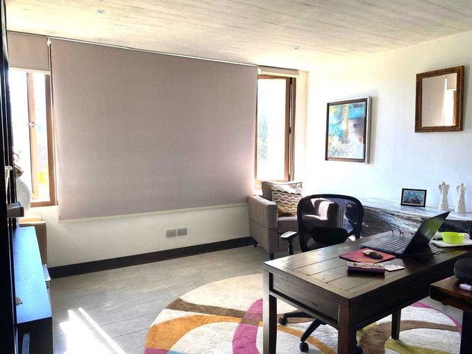 Espectacular casa mediterránea en exclusivo condominio Lomas de la Dehesa, donde se encuentra el club de golf. A pasos del colegio Santiago College y cerca del Everest y Monte Tabor. Amplios espacios, agradable luz natural, lindas vistas y sin ruidos de caminos principales.