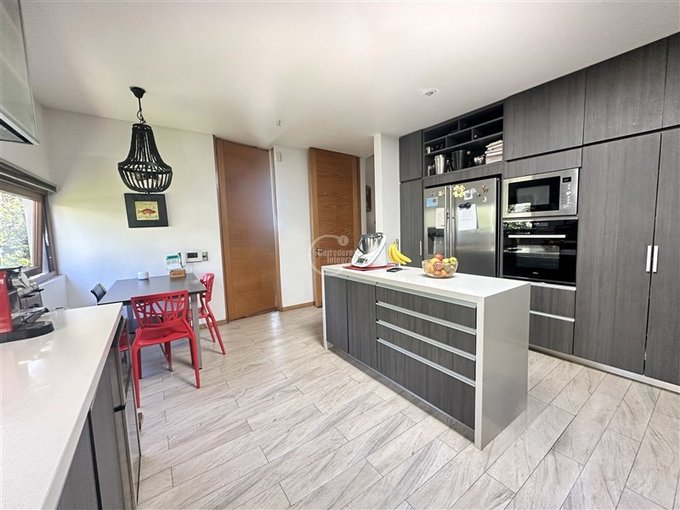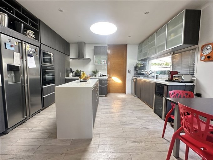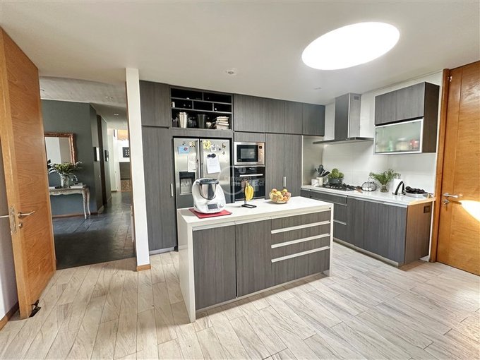 Amplia cocina con isla, patio de servicio, lavadero, pieza y baño de servicio.