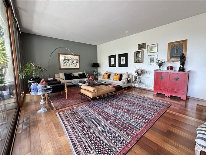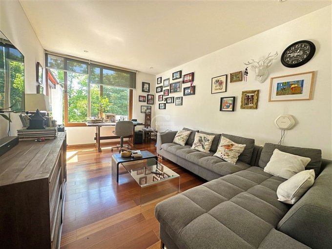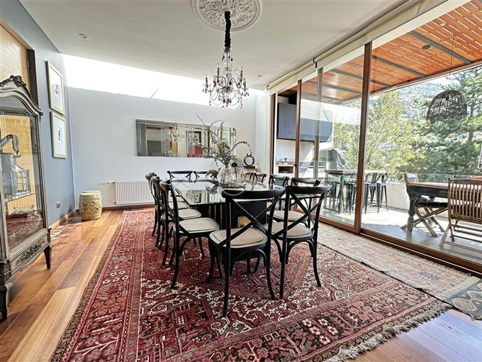 Nivel acceso: Hall de entrada, living de gran tamaño con salida a terraza techada, comedor separado con salida a una segunda terraza con quincho en obra. Ambas terrazas se conectan y tienen escaleras hacia lindo jardín con árboles grandes y piscina.