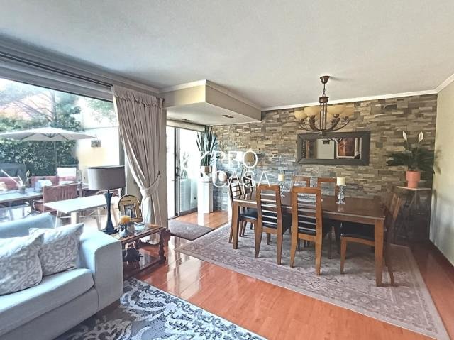 Casa en venta, sector Paseo Pie Andino, Avenida la dehesa y Huinganal. Calle tranquila en proceso para convertirse en pasaje cerrado. Primer piso: Hall de entrada, baño de visita. Living y comedor con salida a terraza, jardín y piscina temperada. Dormitorio principal en suite con walk in closet. Escritorio. Cocina con comedor de diario, Amplia logia y lavadero, dormitorio y baño de servicio. Segundo piso: Sala de estar, 3 dormitorios que comparten 1 baño. 160m2 construidos con 350 m2 de terreno. (metraje entregado por propietario sujeto a verificación).- Contribuciones trimetrales: $215.000 aprox Código interno Procasa: 68353
