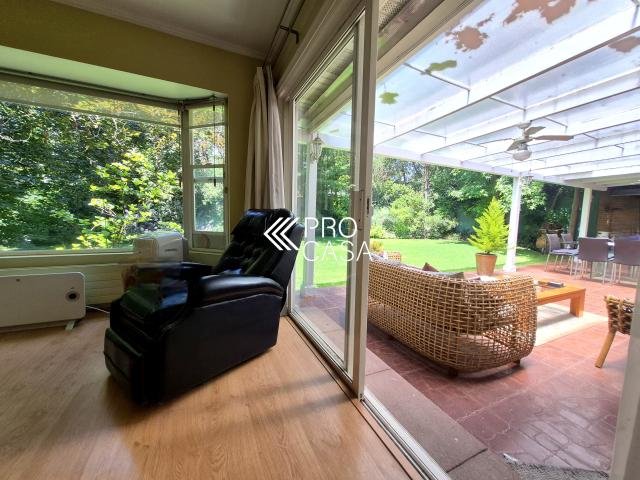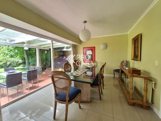 Código interno Procasa: 68631 Casa estilo Giorgian ubicada en Valle la Dehesa, a pasos del colegio Huinganal, colegio Mayflower y strip centes Pie Andino. Seguridad las 24 horas. Amplio hall de entrada, Living y comedor separados con salida a terraza techada. Cocina con comedor de diario. Dormitorio más baño de servicio Lavandería cerrada. Baño de visitas. Dormitorio principal en suite con salida a terraza. Segundo dormitorio más un baño completo En el segundo piso:Sala de star luminosa y dos dormitoiors que comparten un baño. Destaca por su luz natural. varios estacionamientos y un maravilloso jardín. 215 m2 útiles en 611 m2 totales. (Metraje entregado por propietarios sujetos a verificación) Contribuciones: $1.067.802 aprox.