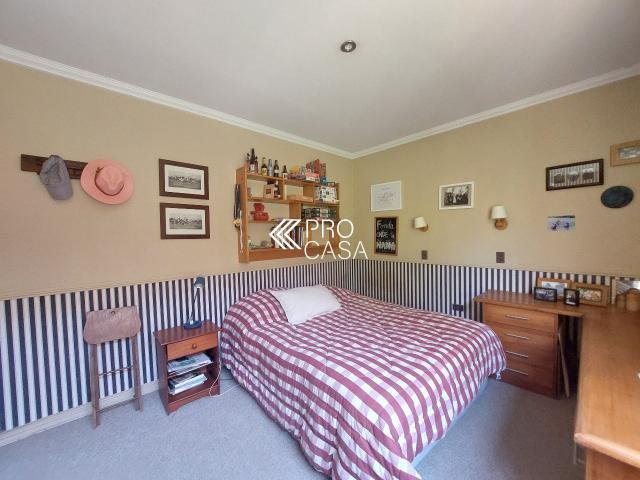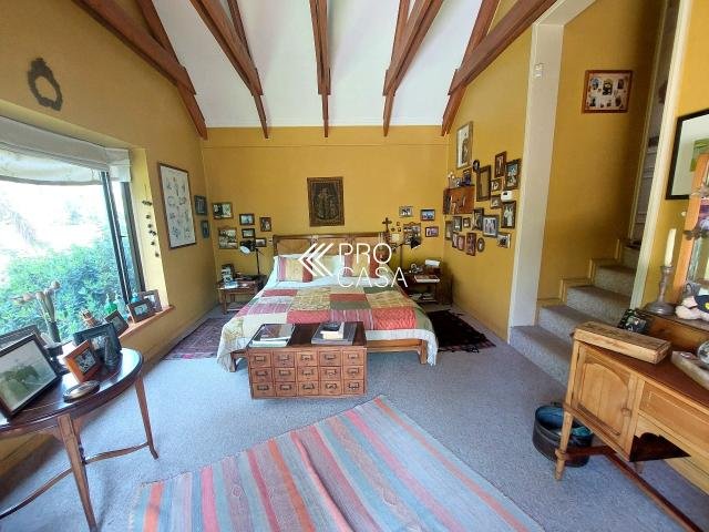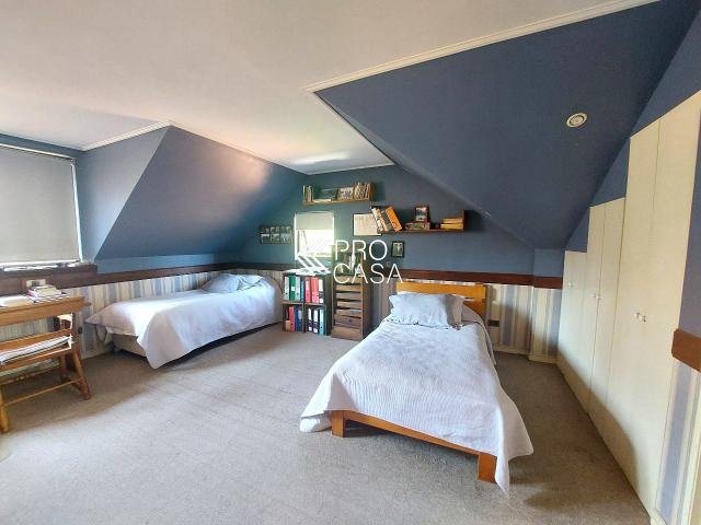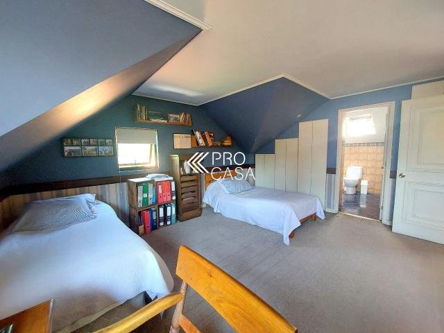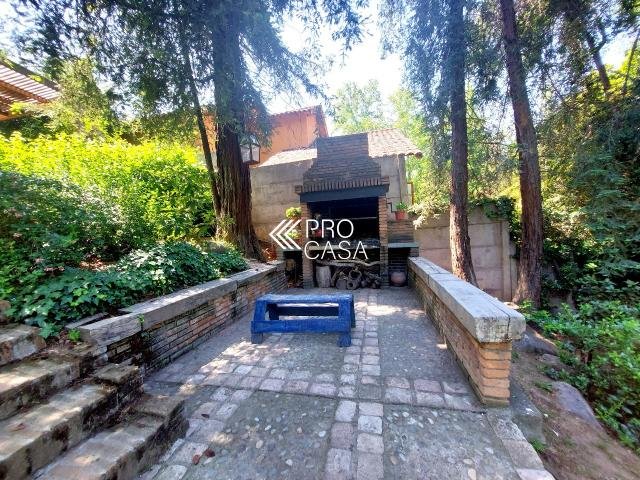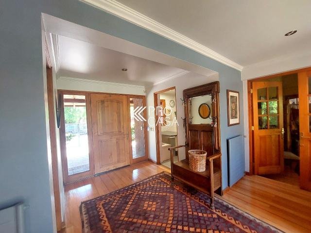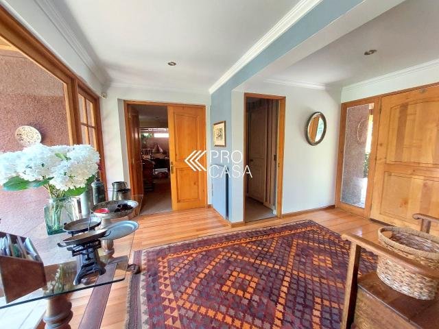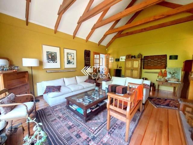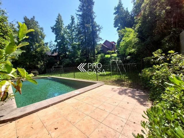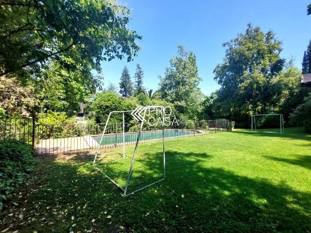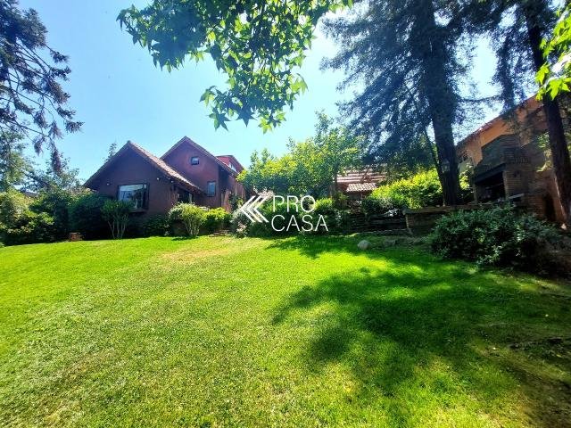 Código interno Procasa: 67133 Muy linda casa estilo chileno colonial. Realmente es una casa de campo y por la tranquilidad del barrio y el gran terreno es como estar en el campo. Lindo jardín, pisos de madera, puertas y ventanas de madera de raulí, amplios espacios. Equidistante de los colegios El Huinganal y mayflower (850mts aprox) 368/1521 m2; 4 dormitorios, 4 baños completos; 1er piso: Hall, living y comedor separados, cocina, pieza y baño de servicio, baño de visitas, sala de estar o escritorio, 2 dormitorios comparten 1 baño y dormitorio principal en suite con walk in closet. 2do piso: Gran sala de estar y gran dormitorio en suite. **La casa puede ampliarse aun mas. Contribuciones: $1.631.000