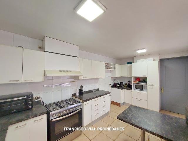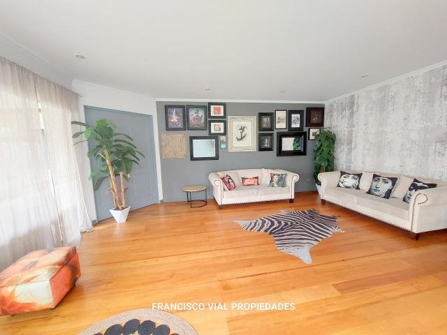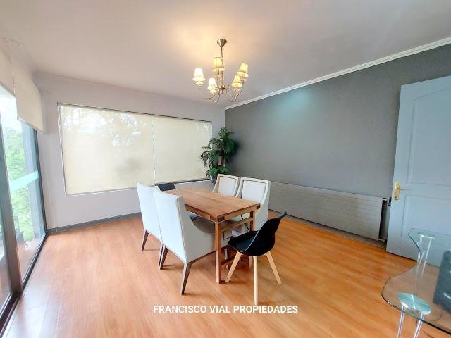 Acogedora y muy luminosa casa de dos pisos en un sector muy tranquilo de La Dehesa Cerca de mall Vivo Los Trapenses Y colegio Newland School entre otros Excelente conectividad Amplio hall de entrada Living y comedor separados con salida a una gran terraza techada y jardin Cocina con comedor de diario y una a loggia, servicios completos 7 Dormitorios incluyendo el de servicio más 5 baños incluyendo baño visitas y servicios Sala de estar 380 m2 útiles 1.000 m2 terreno Metraje entregado por propietario sujeto a verificación Estacionamiento para 5 autos Contribuciones$ 1.048.000.- aprox Procasa: 64794 Procasa: 64959 Código interno Procasa: 65691