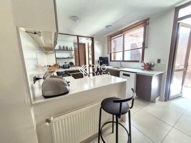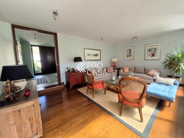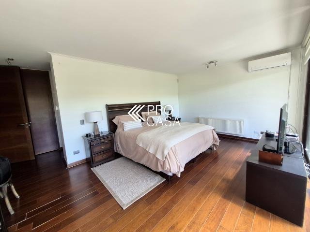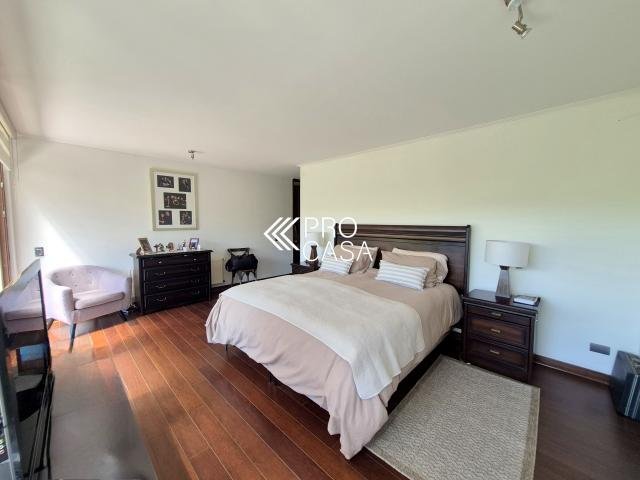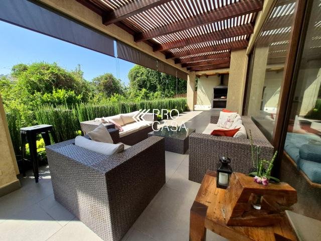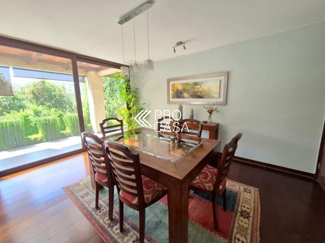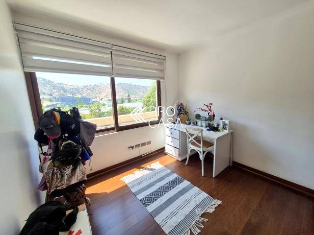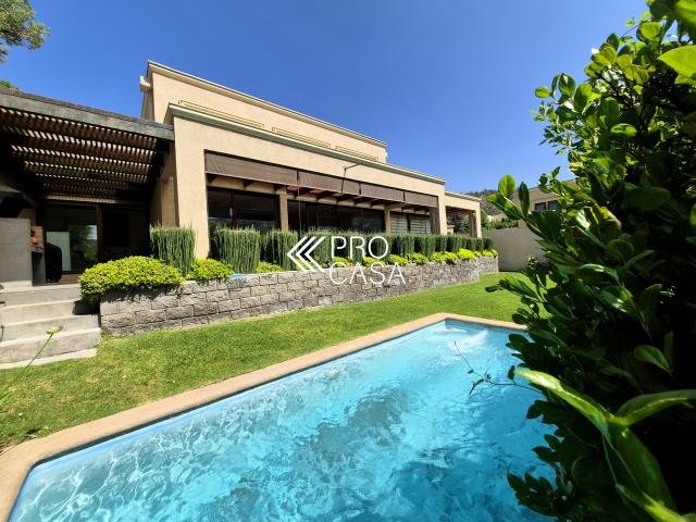 Código interno Procasa: 68658 Preciosa y luminosa casa en condominio Los Litres, cercana a los colegios Santiago College, Monte Tabor, Craighouse y Everest. Primer Priso: Amplio hall de entrada. Living y comedor con salida a terraza techada y jardín formado con piscina y quincho. Cocina con comedor de diario, logia y dormitorio más baño de servicio. Dormitorio principal en suite con walk in closet y preciosa vista al jardín. Escritorio. Segundo piso: Sala de estar. Dos dormitorios, uno de ellos en suite más un baño completo. 245 m2 útiles en 600 m2 totales. (Metraje entregado por propietario, sujeto a verificacion) Gastos comunes: $250.000 aprox. Contribuciones: $1.400.000 aprox. Estacionamiento techado para 2 autos / 1 bodega