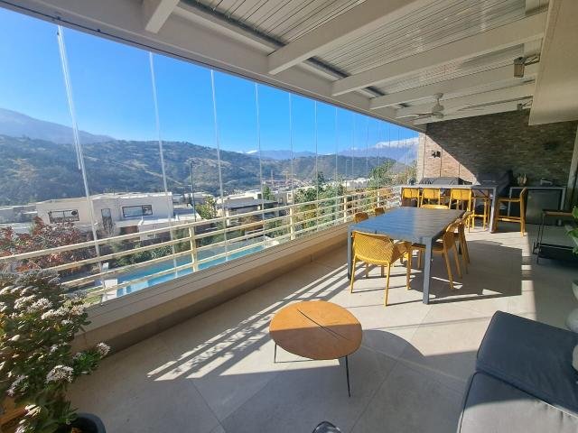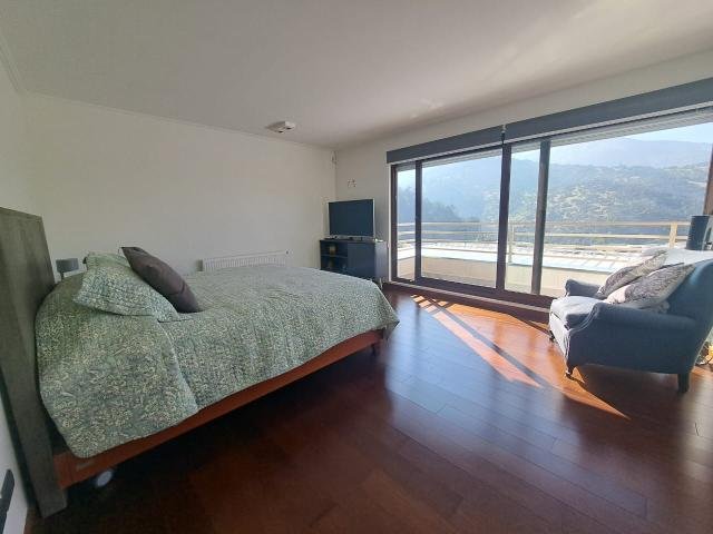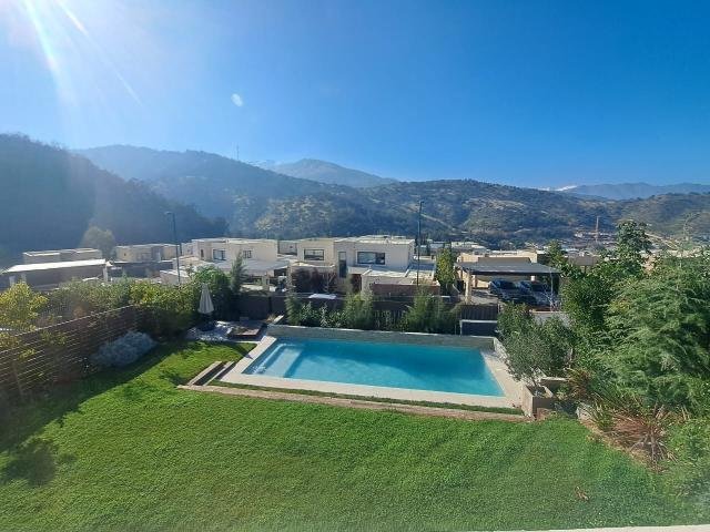 Código interno Procasa: 66573 Espectacular casa estilo mediterráneo(3 años de antigüedad) con increíble vista oriente. Cercana a colegios. DISTRIBUCIÓN: Condominio cerrado. Estacionamiento techado para 3 autos Hall de entrada . Living y comedor separados que dan a linda terraza techadas cerrada con vidrio templado(30 mt2 ) con vista a la piscina . En entrada a la propiedad esta construido debajo del estacionamiento techado Un gimnasio ,un taller y Bodega(80 mt2) Baño de visita. Cocina con comedor de diario . Loggia. Dormitorio más baño de servicio. En subterráneo un gran sala de estar de 35 mt2 con salida directa a la piscina Segundo piso: 3 dormitorios. Principal en suite más 2 dormitorios con 1 baño compartido. TERMINACIONES: Piso de porcelanato en toda la propiedad menos en los dormitorios que son con piso flotante . Cubierta de cuarzo en vanitorios de todos los baños. Cocina con cubierta de granito y piso de porcelanato. Todas las ventanas con vidrios termo panel y calefacción central. Mt2 construidos: 240 m2 útiles mas 30 mt2 de terraza techada y los 80 mt2 de gimnasio, taller y bodega. MT2 de terreno Total de 600 m2 de terreno (Metraje e información entregado por propietario, sujeto a verificación) Gastos comunes: $180.000 aprox./ Contribuciones: $ 1.300.000 aprox. SI AÚN NO TIENES TU CRÉDITO, TE ASESORAMOS PARA CONSEGUIRLO.