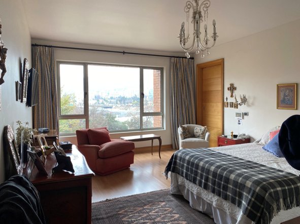 El dormitorio principal tiene un gran walking closet y buen baño con jacuzzi, hay otra suite y una pieza más con otro baño completo, sala de estar.
