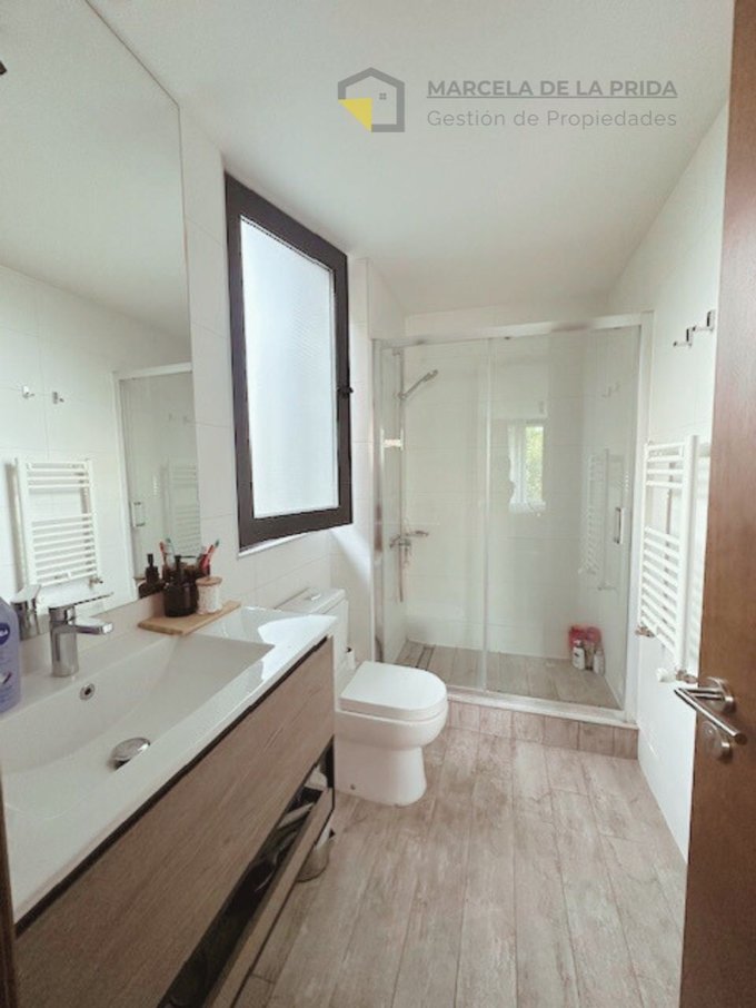 El departamento destaca por sus excelentes terminaciones: pisos de porcelanato, ventanas de PVC con termopanel, cocina equipada con cubiertas de cuarzo blanco, horno eléctrico empotrado, encimera eléctrica de cuatro platos y campana retráctil. La calefacción es por radiadores en dormitorios y living-comedor, con caldera exclusiva por departamento, además de secatoallas en baños. Altura piso a cielo de 2,40 m, lo que aporta mayor amplitud y confort.