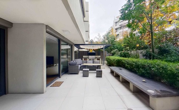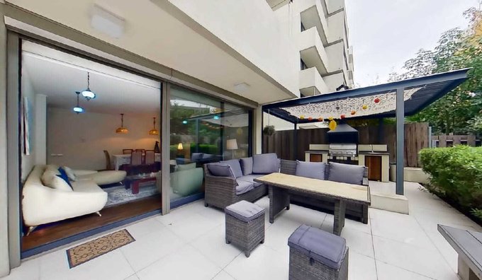 A pasos del Portal la Dehesa, a minutos del acceso a costanera norte, cercano a colegios, restaurantes, comercio y servicios.