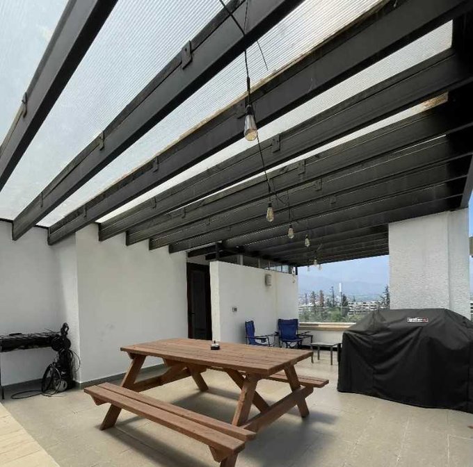 Espectacular Departamento DUPLEXcon gran Terraza Panorámica en azotea con lindas vistas,quincho y Jacuzzi. 3 dorm + 3 Baños + 3 Estacionamientos y Bod., en Comandante Malbec,a pasos del Centro comercial La Dehesa, en uno de los mejores sectores de Santiago, con todo a mano y en un modernoedificio en Condominio con todos los servicios y seguridad.