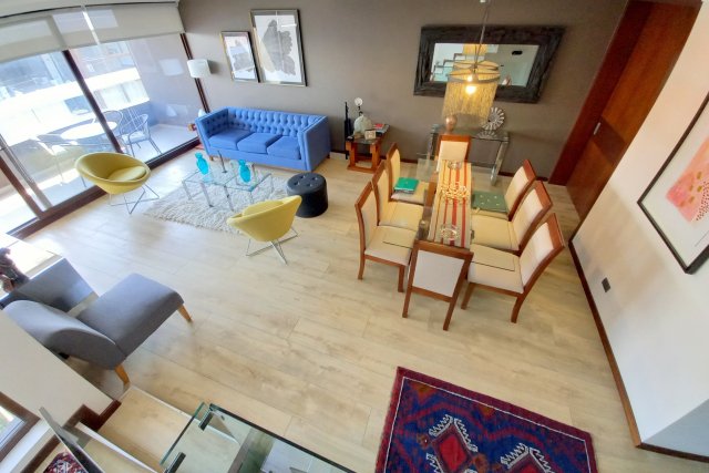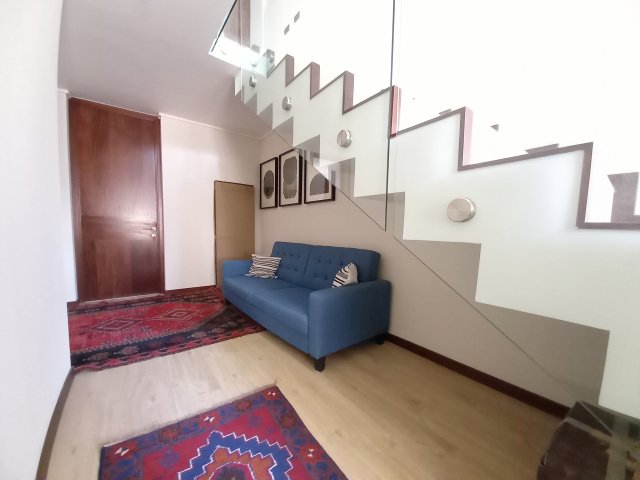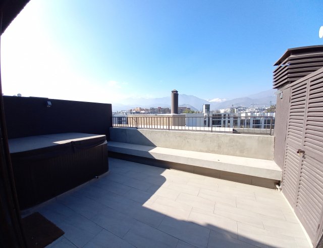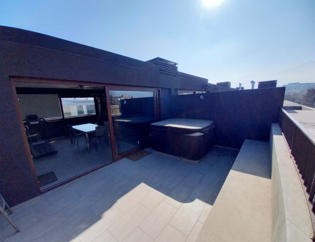 Moderno departamento duplex con gran quincho cerrado y terraza con hot tub en azotea Preciosa vista a la cordillera DISTRIBUCIÓN Segundo Piso Hall de entrada Living comedor de gran tamaño con salida a terraza Baño de visitas Moderna cocina con finas terminaciones Loggia Dormitorio más baño de servicio Primer Piso 3 Amplios dormitorios principal en suite con walk in closet cabe mencionar que el baño y el walk in closet se encuentran juntos Sala de estar más un baño Azotea Amplia y completamente remodelada con quincho cerrado y terraza con hot tub El departamento presenta finas terminaciones termo panel en todas sus ventanas y ventanales incluyendo quincho y se encuentra en sector de La Dehesa Central Excelente conectividad y accesos Barrio tranquilo cerca a mall Portal La Dehesa restaurantes farmacias colegio Los Alerces Mayflower Tabancura cruzando Costanera Norte y a 5 minutos de la Clínica Alemana 166 m2 útiles 30 m2 terraza 199 m2 totales metraje entregado por dueño sujeto a verificación más 26 m2 útiles de azotea cerrada Gastos Comunes $200.000 aprox Contribuciones $ 314.000 aprox 2 Estacionamientos 1 Bodega Procasa 64492