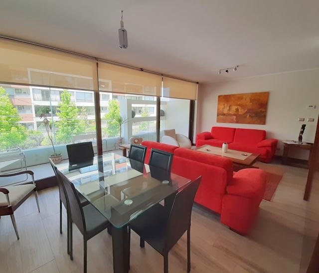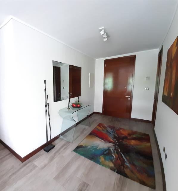Estupendo departamento ubicado en calle tranquila rodeado de árboles A pasos del Portal La Dehesa MÁXIMA CONECTIVIDAD a través de grandes avenidas y autopistas urbanas Cercano a farmacias supermercados restaurantes bancos DISTRIBUCUÓN Amplio hall de entrada Baño de visitas Cocina totalmente equipada con puerta corredera hacia el comedor Loggia de muy buen tamaño Dormitorio y baño de servicio Amplio living y comedor con salida a terraza 3 Dormitorios principal en suite con walk in closet más un baño completo El edificio cuenta con piscina quincho sala de eventos y gimnasio 160 m2 útiles 20 m2 terraza 180 m2 totales aprox Metraje entregado por dueño sujeto a verificación 2 Estacionamientos 1 Bodega. Gastos Comunes $ 250.000 aprox Incluye agua caliente Contribuciones $ 357.000 aprox Procasa: 64490
