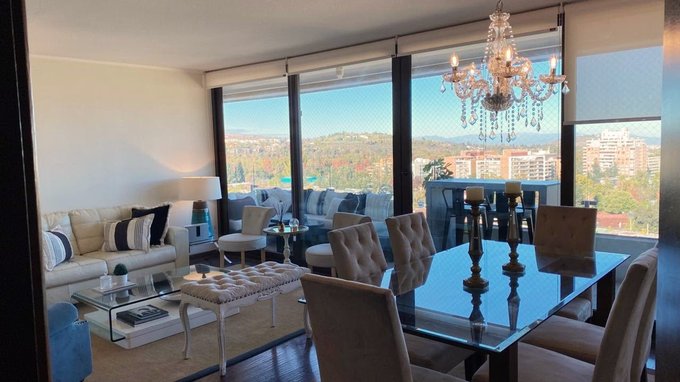 RED GLOBAL TEAM presenta Departamento de 144,9 mt2, orientación Nor-Poniente, a pasos de la Av Las Condes en excelente barrio residencial de Lo Barnechea, Zona exclusiva, segura, rodeada de áreas verdes parque de la Chilenidad, cerro Alvarado, Jardín de la Dehesa, Mall Sport, a 3 minutos del Portal La Dehesa, ciclo vías, Colegios, Universidades, Club de Golf, Supermercado, Lindos cafés y Restaurantes, con buena conectividad y acceso rapido a la Autopista Costanera Norte.