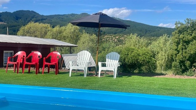 Este inmueble cuenta con 5.000m2 de terreno, con 2 casas completamente equipadas, con recepcion final, aire acondicionado y calefacción, bosca , luz, agua potable, pozo y canal de regadio, piscina, estacionamiento para 4 vehiculos, bodega 14m2