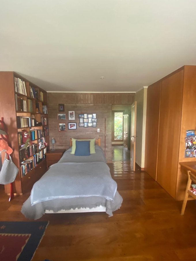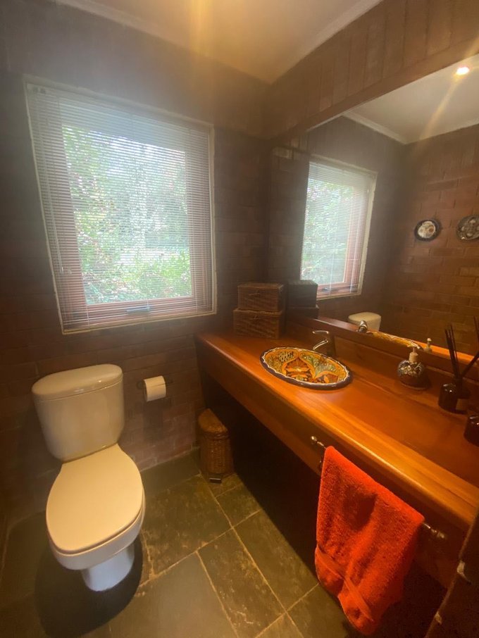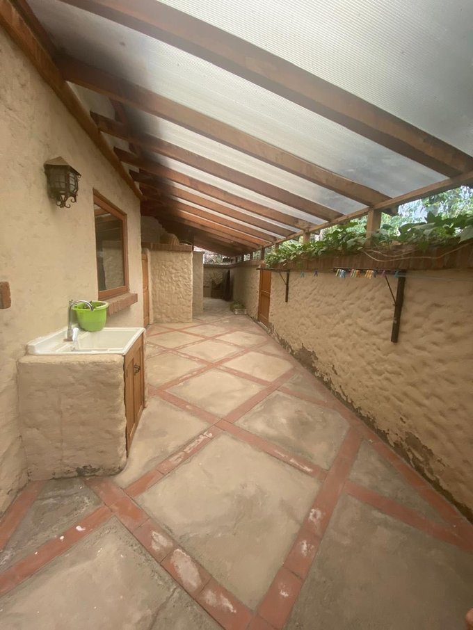 Toda la casa es solida con vidrios de termopanel, piso piedra pizarra, madera vitrificada y cerámico.