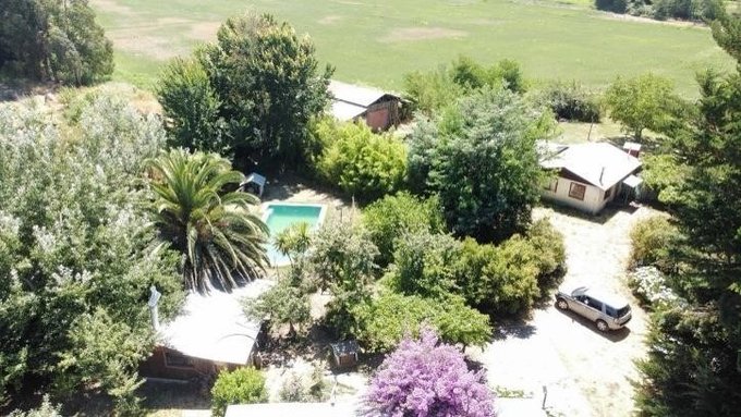 Construcciones y mejoras: casa de 140 m2, quincho, piscina, casa de cuidador y bodega, además de quinta con árboles frutales.