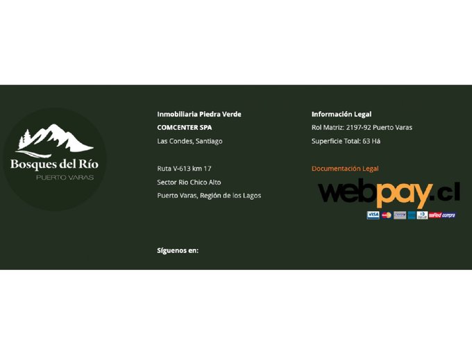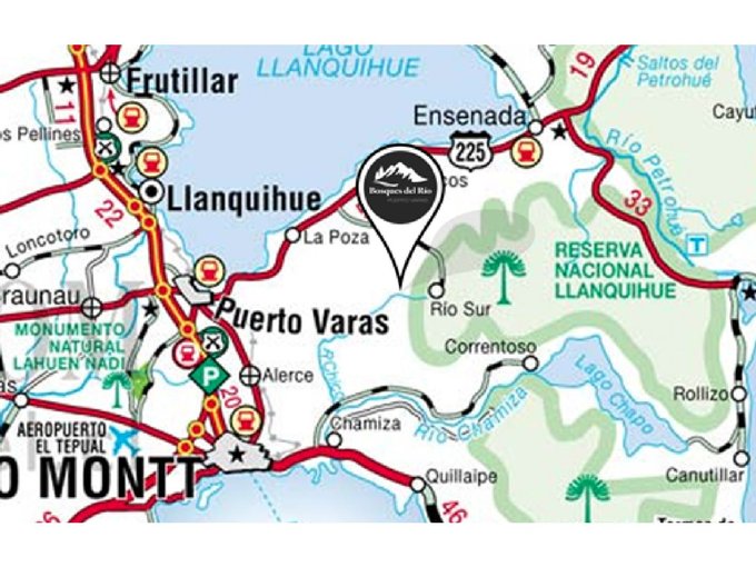 Bosques del Río pertenece a la comuna de Puerto Varas y cuenta con una superficie de 630.000 metros cuadrados de bosque nativo, con suaves lomajes e imponentes vistas a las montañas, el mar, los lagos, volcanes y bosques centenarios.