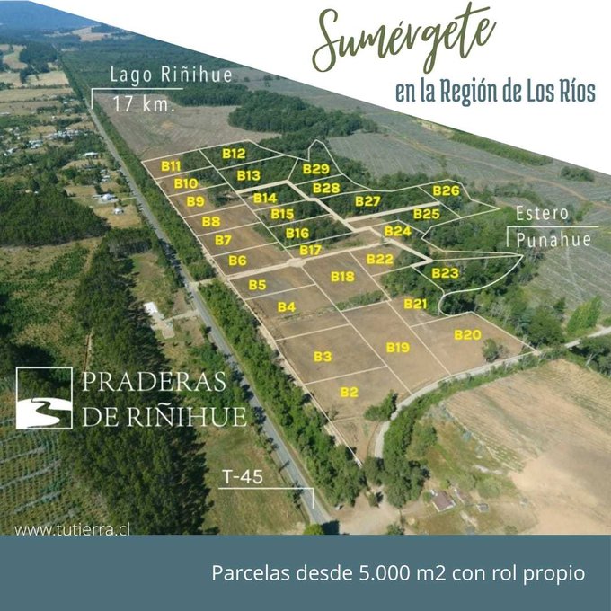 Parcela ideal para construir tu casa en un sector de ensueño. A 14 minutos de Riñihue y 20 min del centro de la comuna de Los Lagos.