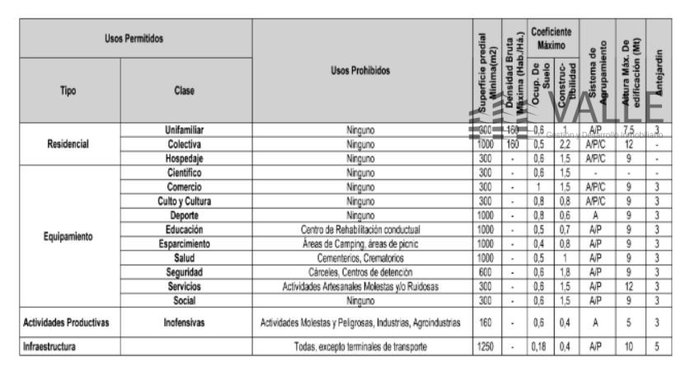 Usos de suelo permitidos