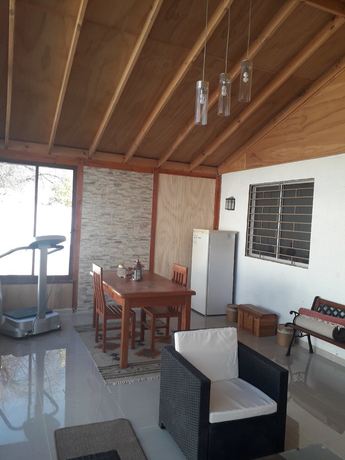 Quincho con gran espacio interior con piso de muro a muro de porcelanato