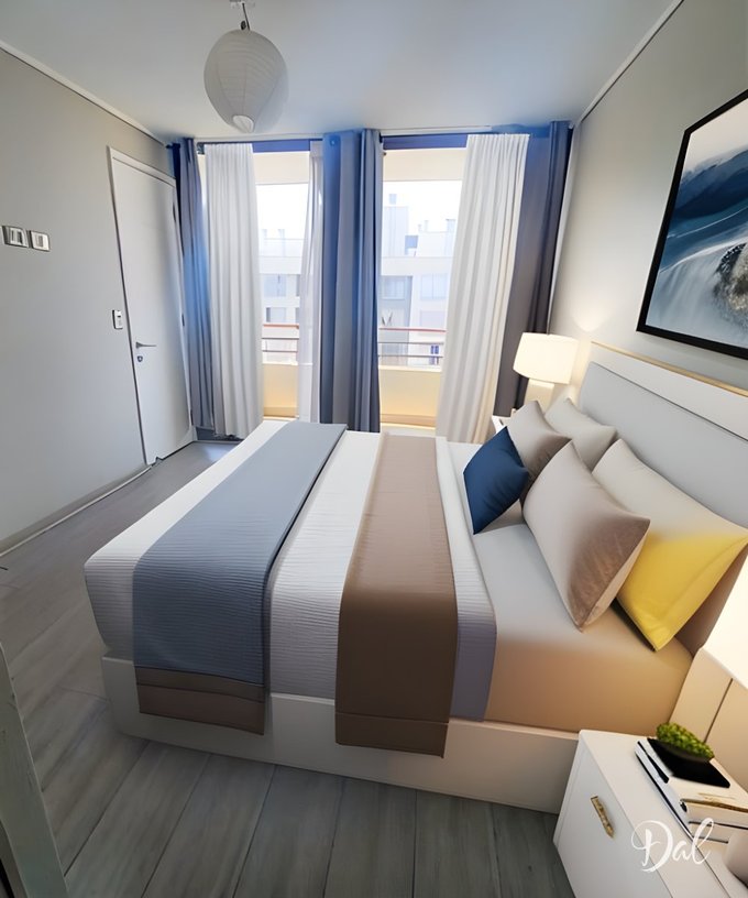 Cuenta con dos dormitorios, ambos con baño en suite, y una cocina integrada al living, ideal para disfrutar de un ambiente amplio y luminoso.